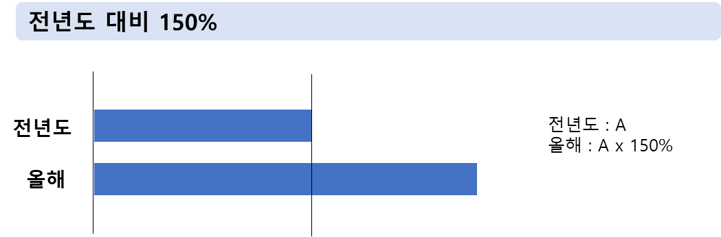 → 2021년 100이었다면 150%를 곱하여 150이 되었다는 의미(100×150%)입니다.