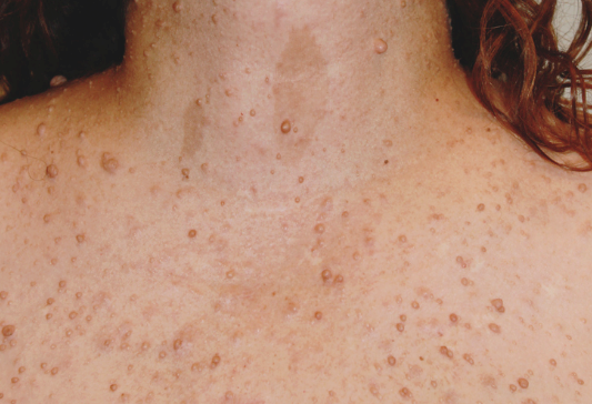 - 겨드랑이 및 사타구니 주근깨: 특정 부위에 작은 반점이 집중적으로 발생