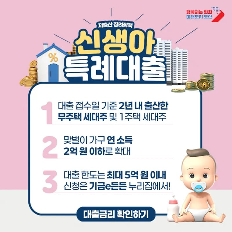 • 대출 대상자: 신청일 기준 2년 내 신생아를 출산한 무주택 세대주