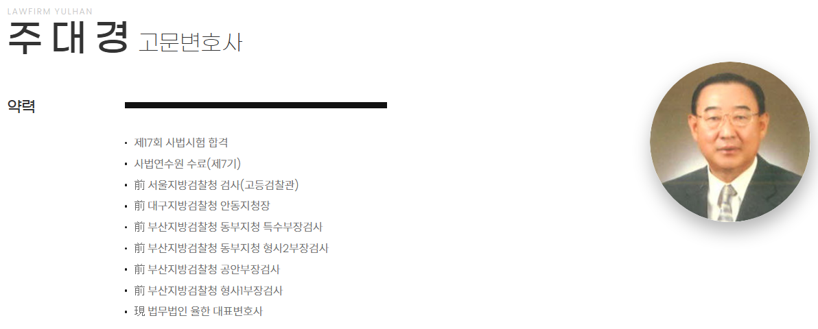 4. 현재의 주대경 – 법무법인 율한 고문 변호사로 활동