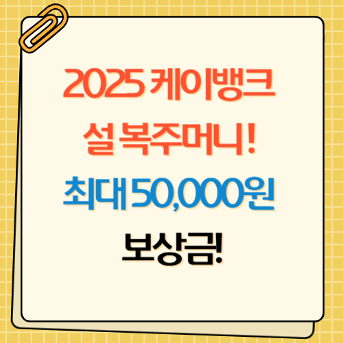 - 혜택: 이벤트 참여 시 현금처럼 사용 가능한 케이뱅크 포인트 최대 5만 원 지급!