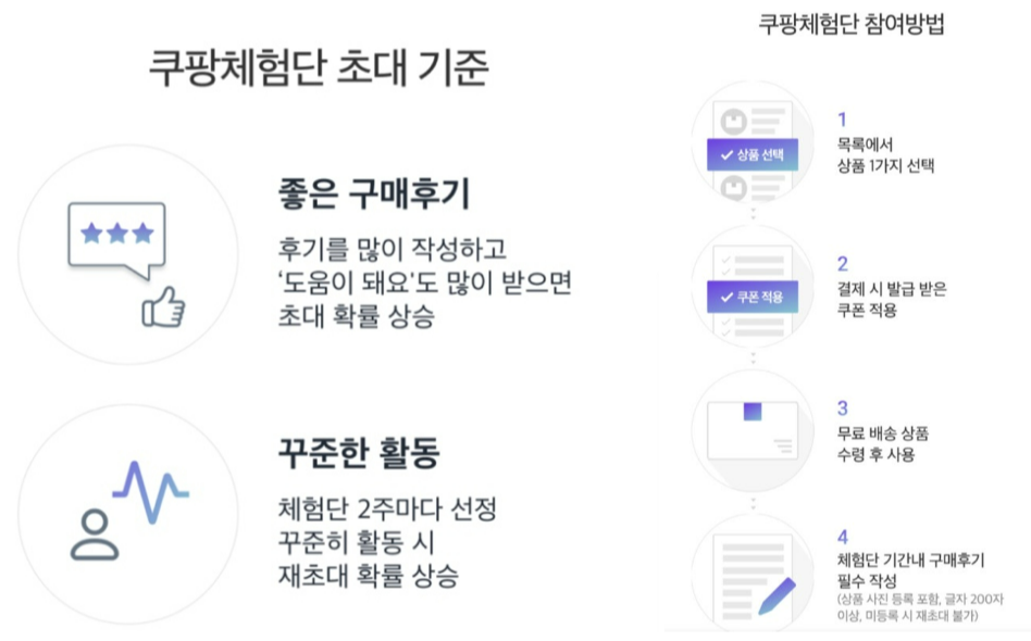 - 초대장 수신: 쿠팡에서 체험단 초대장을 받습니다.