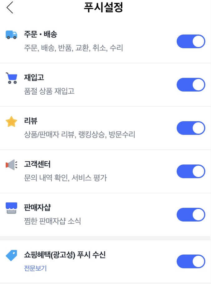 - 알림 설정: 쿠팡 앱에서 마이 쿠팡으로 이동하여 푸시 설정을 활성화합니다. 특히, 쇼핑 혜택 광고성 푸시 수신을 켜야 합니다.