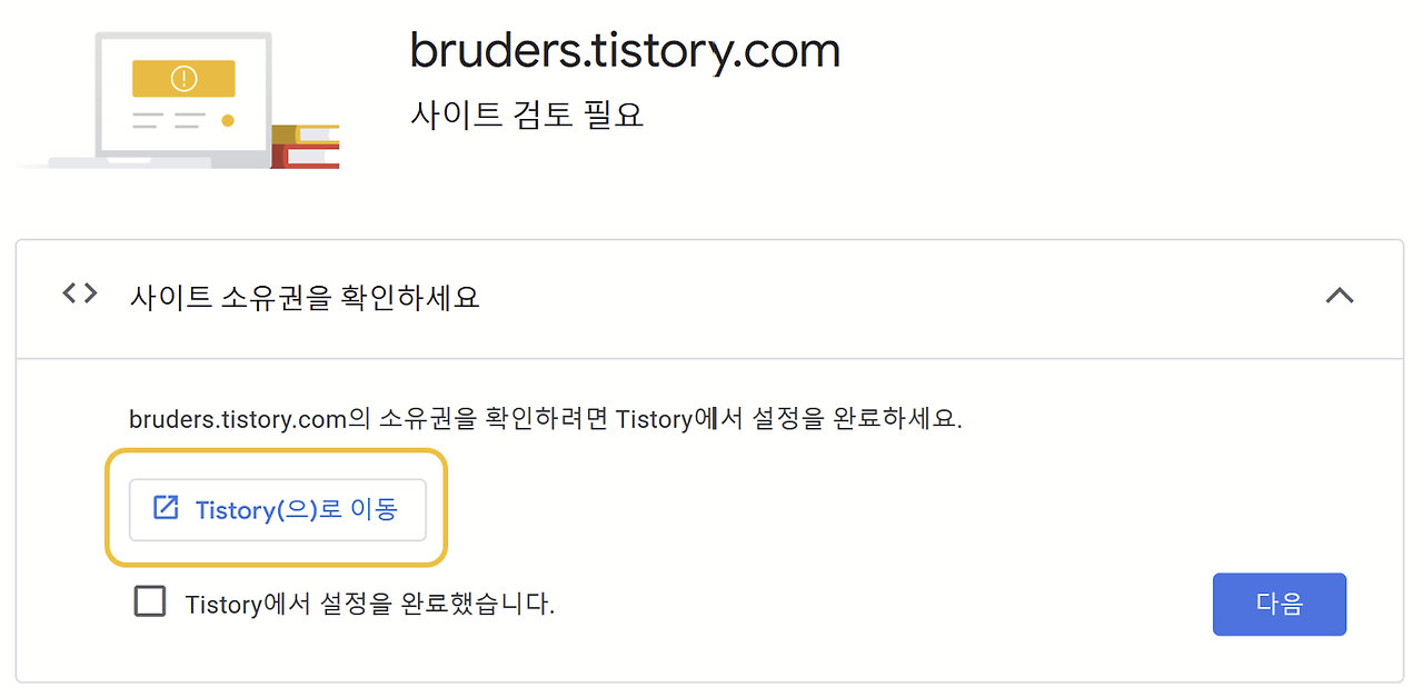 구글에서 블로그가 본인 소유인지 확인하기 위해 설정이 필요해요.애드센스에서 제공하는 코드나 파일을 티스토리 관리자 페이지에 추가하면 검증이 완료됩니다. ✅