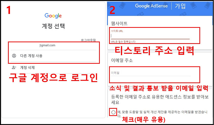 애드센스를 이용하려면 구글 계정이 필요해요.