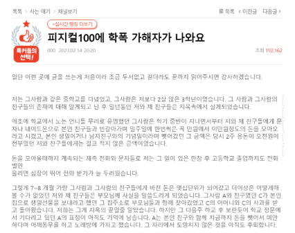 지난 14일 온라인 커뮤니티 네이트판에 '피지컬 100' 출연자와 중학교 동창이었다고 밝힌 A 씨가 김다영으로부터 당한 학교폭력 피해를 고백했습니다.