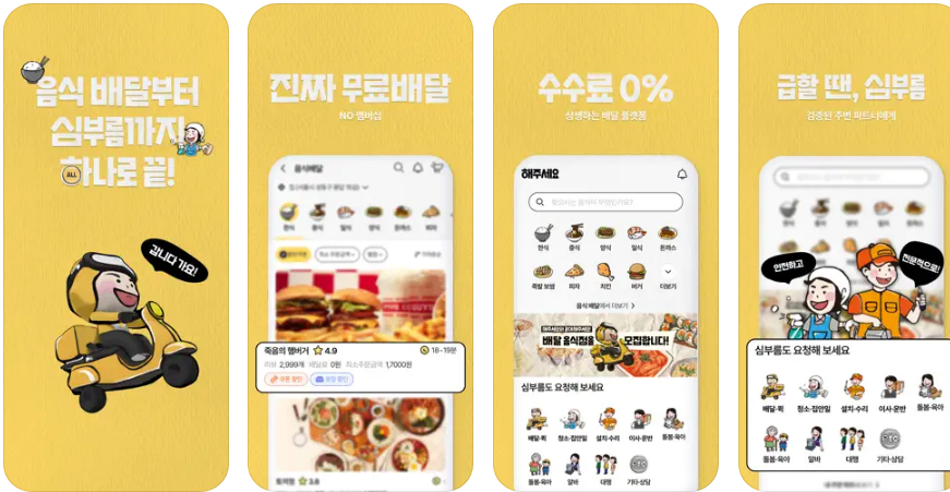 - 앱 설치 → 지역 내 심부름 신청 → 당일 또는 익일 정산