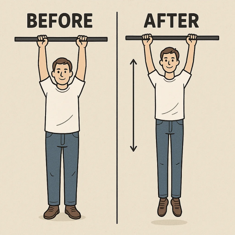 특히 성장판이 닫히지 않은 청소년이나, 장시간 앉아 일하는 성인에게도 도움이 됩니다. 실제로 꾸준한 매달리기 후 키가 1~2cm 늘어난 느낌이 들었다는 사람들의 후기도 많습니다.