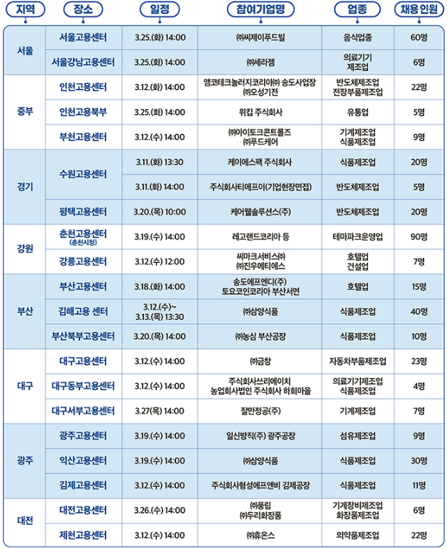 - 3월 12일~3월 25일까지 고용센터 및 대학 캠퍼스에서 개최