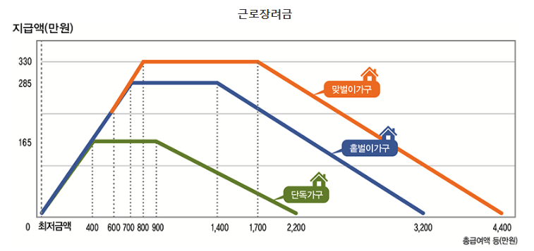 | 맞벌이 가구 | 신청자와 배우자 모두의 근로·사업·종교인 소득이 각각 300만원 이상 | 4,400만원 미만 |