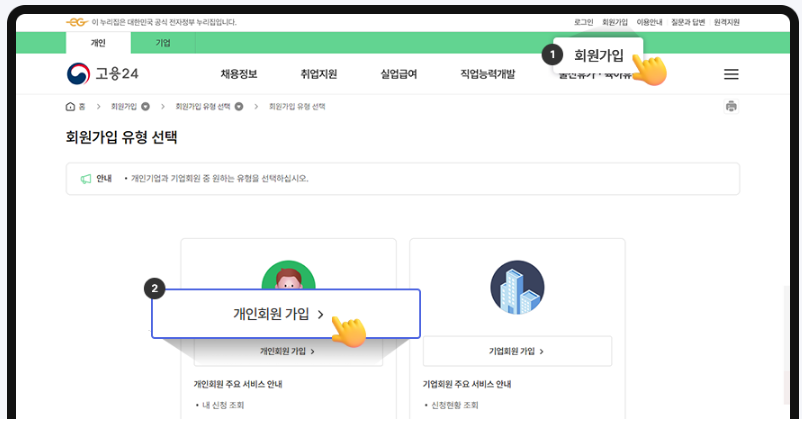 - 고용24 회원가입 및 구직등록
