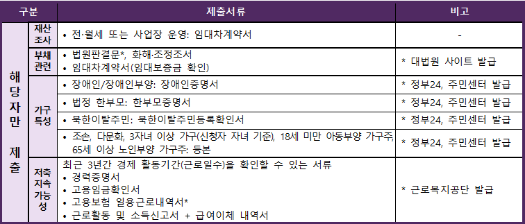 - 조건: 3년 내 탈수급, 교육 이수, 계획서 제출