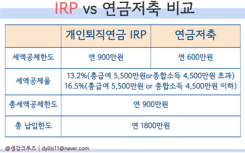 - IRP 세액공제: 연간 최대 900만 원까지 가능