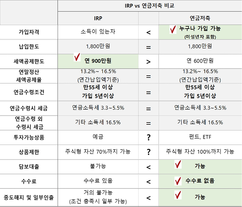 아래 이미지는 IRP와 연금저축의 비교를 시각적으로 보여줍니다.