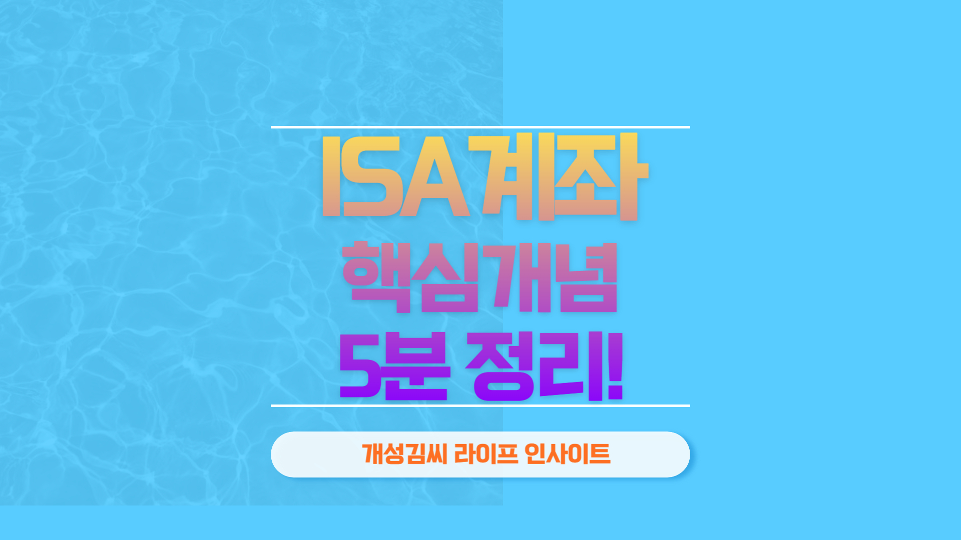 오늘은 ISA계좌의 핵심 개념을 5분 만에 깔끔하게 정리해 드릴게요!