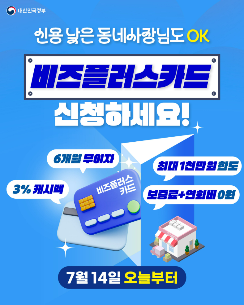 정부가 중저신용 소상공인을 위해 만든 특별한 비즈플러스카드를 꼭 확인해보세요.