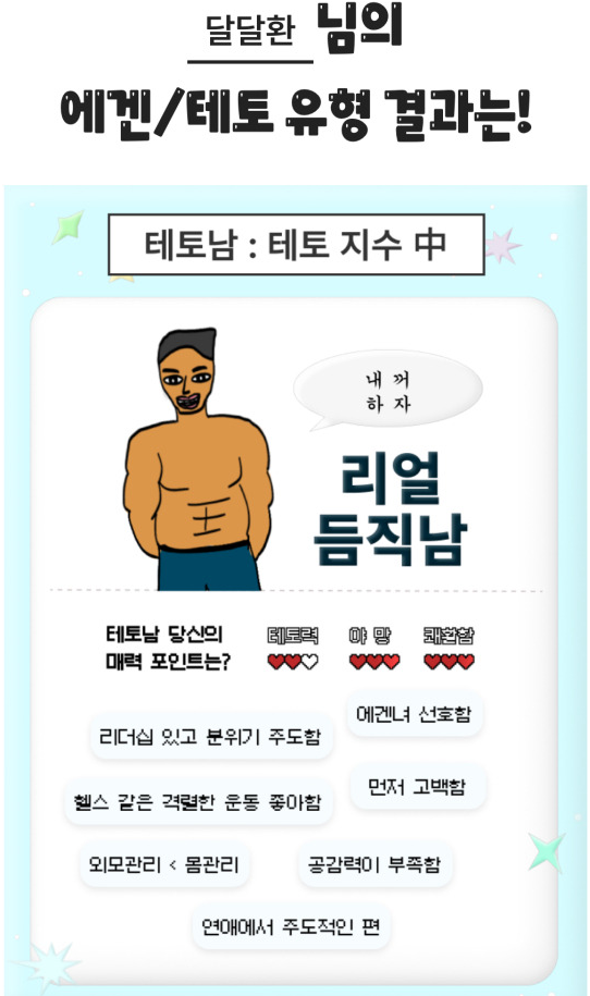 요즘은 “MBTI는 옛날 거”라는 말까지 있을 정도로, SNS와 빠른 피드백을 중시하는 Z세대에게 ‘에겐테토테스트’는 더 매력적인 선택지라는 생각이 듭니다.