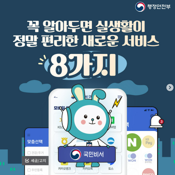 국민비서로 분실 주민등록증, 휴면 예금, 주소 변경, 통관 내역 등 100가지 정부 알림을 무료로 받아보세요. 지금 검색창에 '국민비서'를 검색하고 설정만 하면 개인정보도 자산도 안전하게 지킬 수 있습니다.
