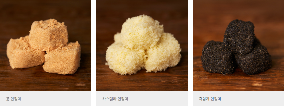 흑임자, 녹차, 카스테라 인절미 등 색다른 변주도 즐길 수 있습니다.