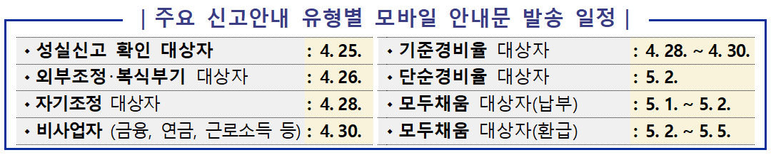 | 성실신고확인서 제출 대상자 | 2025년 5월 1일 ~ 2025년 6월 30일 |