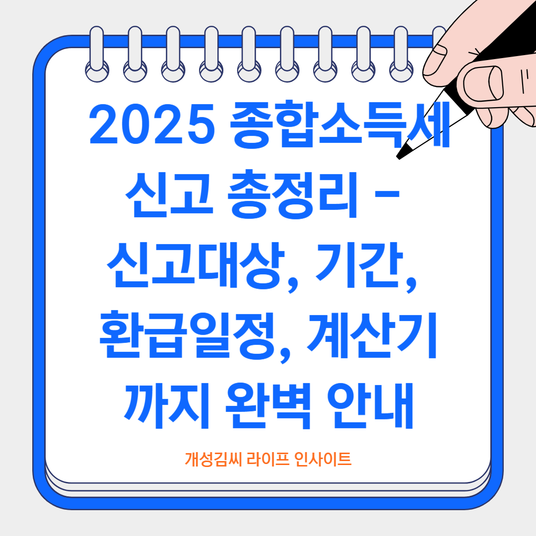 2025 종합소득세 신고는 2024년 소득에 대한 신고입니다. 대상자, 신고기간, 환급일정, 홈택스 신고방법과 계산기 사용법까지 한눈에 정리했습니다.