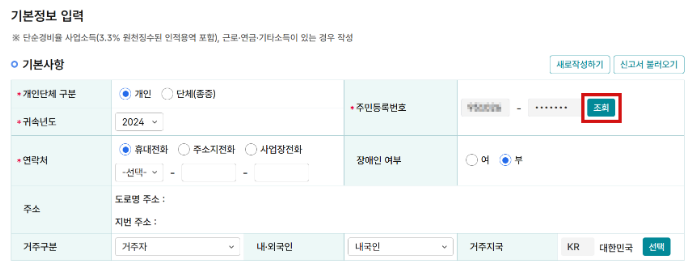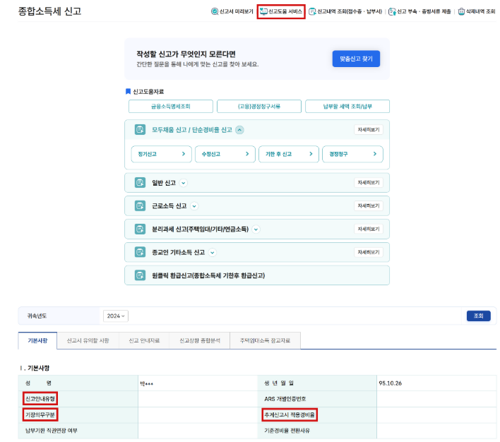 - 신고 경로: [신고/납부] → [종합소득세] → 정기신고서 작성