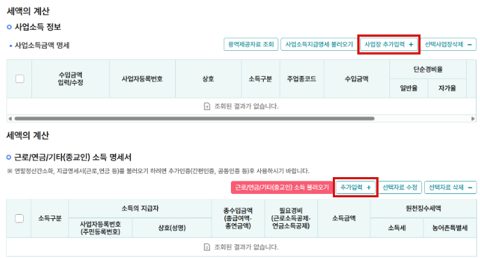 5. 종합소득세 계산기 사용법