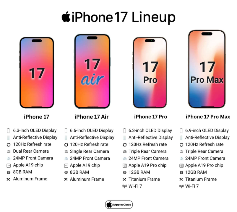 아이폰17 시리즈는 총 4종류로 구성될 예정입니다.