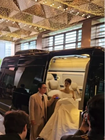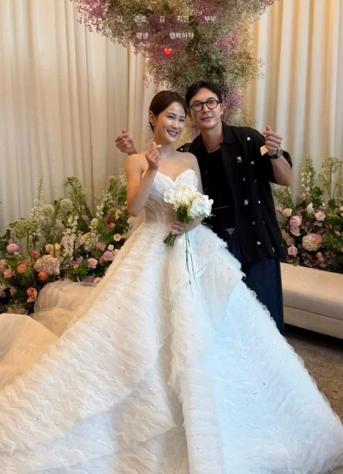 약 1,200명의 하객이 참석한 이 날, 김지민은 식전, 본식, 피로연을 위한 3벌의 웨딩드레스를 준비했습니다.
