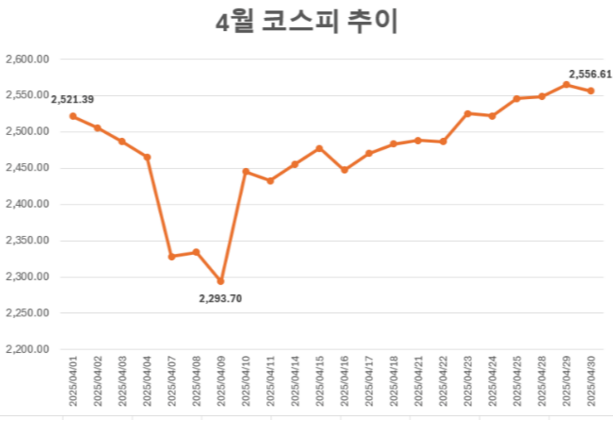 4월 코스피 추이 / 출처: 한국거래소 정보데이터시스템