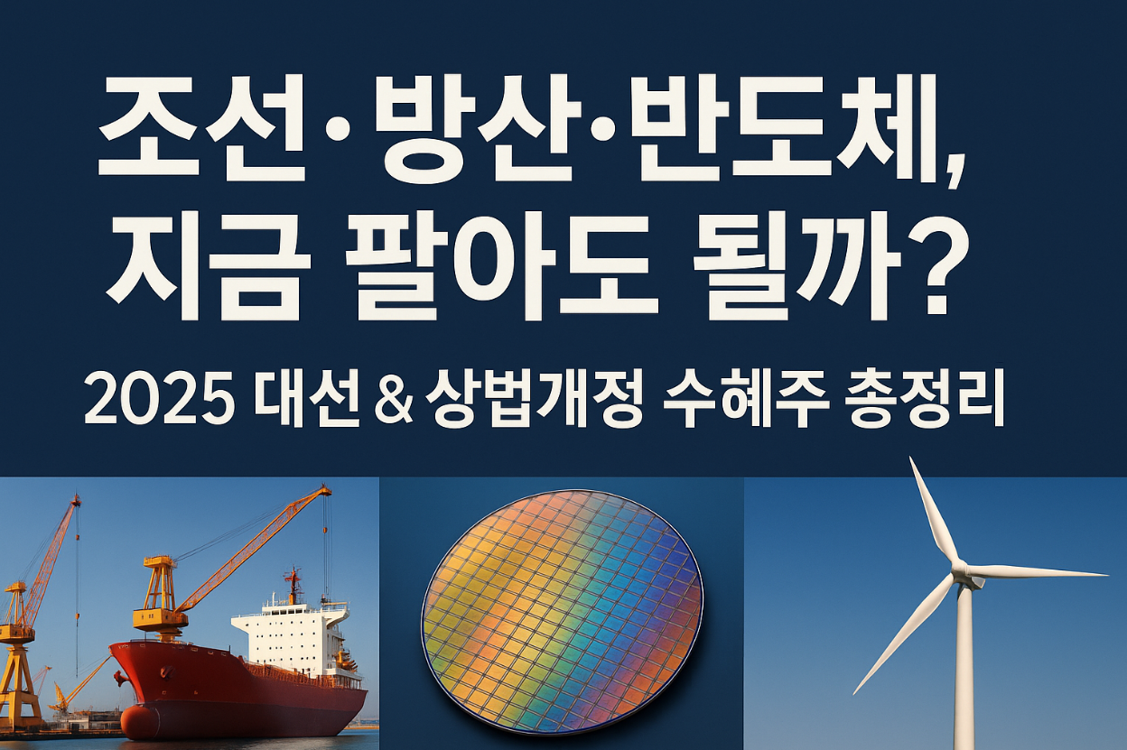 2025년 대선과 상법개정안 통과 시 수혜가 예상되는 산업은 어디일까요? 조선·방산·반도체주 투자 전략과 지주사, 고당배주, 풍력 관련 수혜 종목을 정리했습니다.