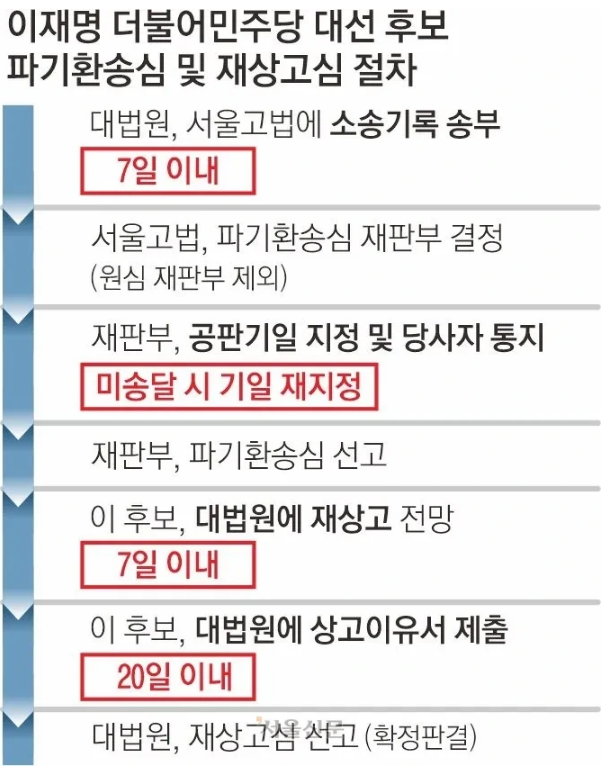 이재명 후보의 사건은 대법원의 파기환송으로 인해 다시 서울고등법원에서 심리를 받게 되었습니다.