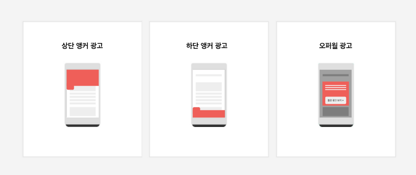- 앵커 광고: 화면 상단 또는 하단에 고정되어 사용자 스크롤과 함께 따라오는 배너 광고