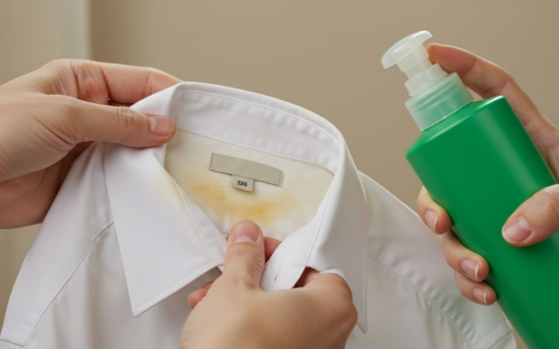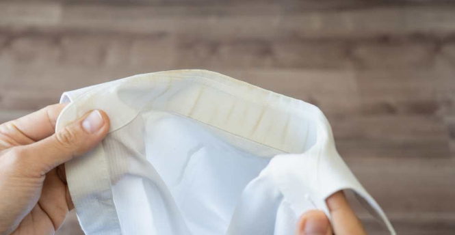 흰 티셔츠를 꺼냈는데 목 부분이 누렇게 변해 있다면요?