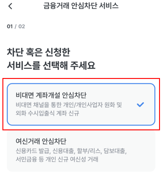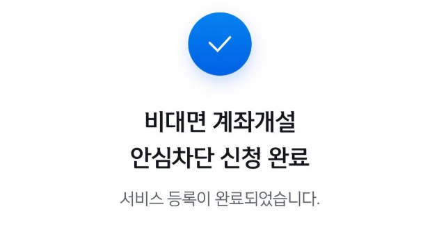- ‘비대면 계좌개설 안심차단’ 항목 선택 후 신청 완료